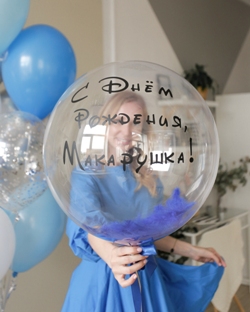 Это прозрачные как стекло шары из пластика, в наличии представлены два размера 50 см и 60 см. Наполнить шар можно перьями, конфетти или маленькими шариками. В шар 50 см мы добавляем 7 маленьких шаров, в большой - 9. К любой композиции из шаров можно подобрать свой цвет перьев, конфетти или шаров. Например перья в шаре могут быть белые, розовые, голубые, синие, фиолетовые, бирюзовые, красные, черные. Цветовая палитра конфетти еще больше. Мы даже делаем микс в прозрачном шаре из перьев или конфетти, чтобы соблюсти гармонию набора шаров. Время полета таких шаров до 2-3 дней, чем больше на нем атрибутов, там тяжелее шар и меньше он летает.