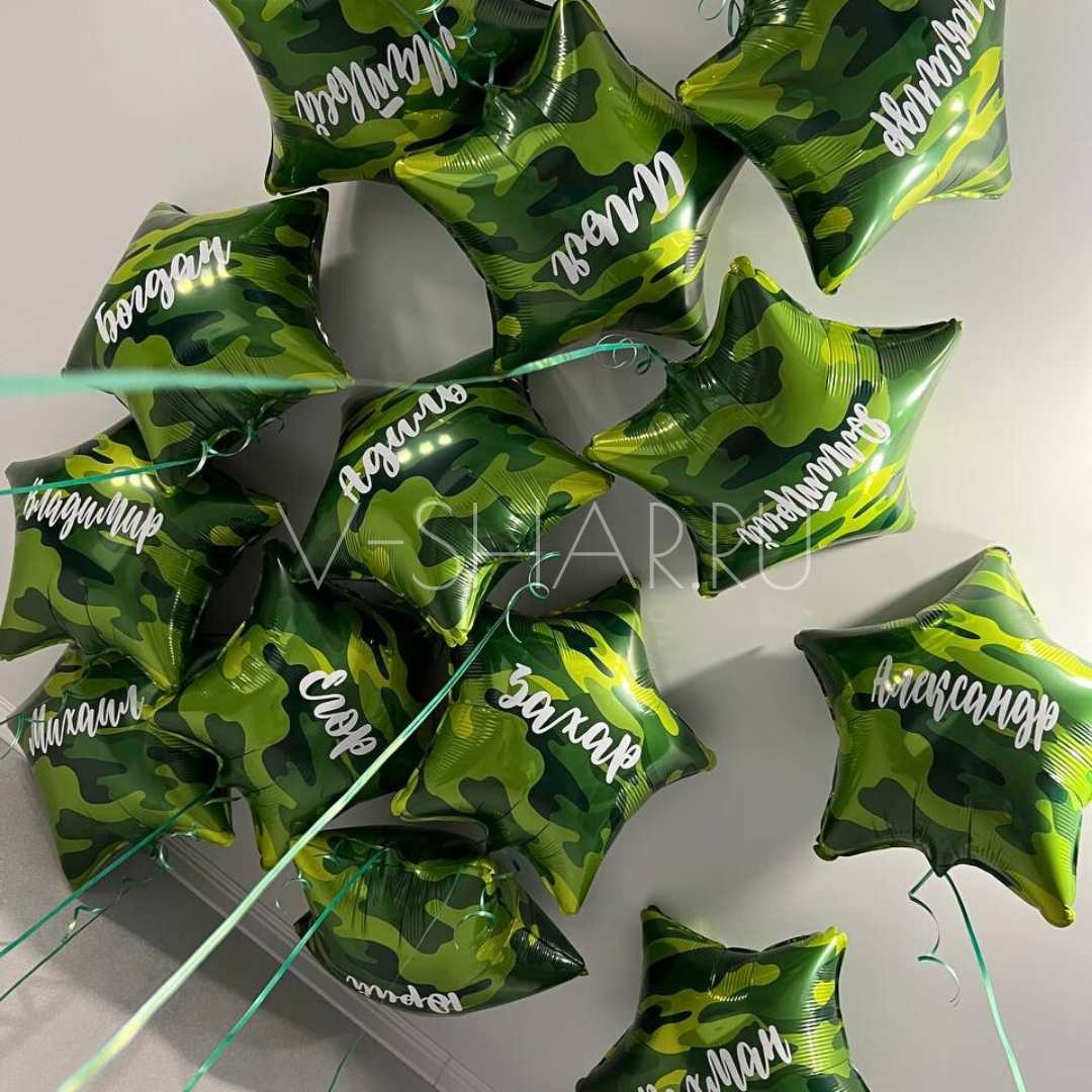 Фигура фольгированная: звезда с рисунком камуфляж 45 см с гелием.