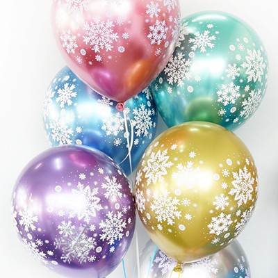 - Фонтан из 7 латексных шаров хром с изображением снежинок