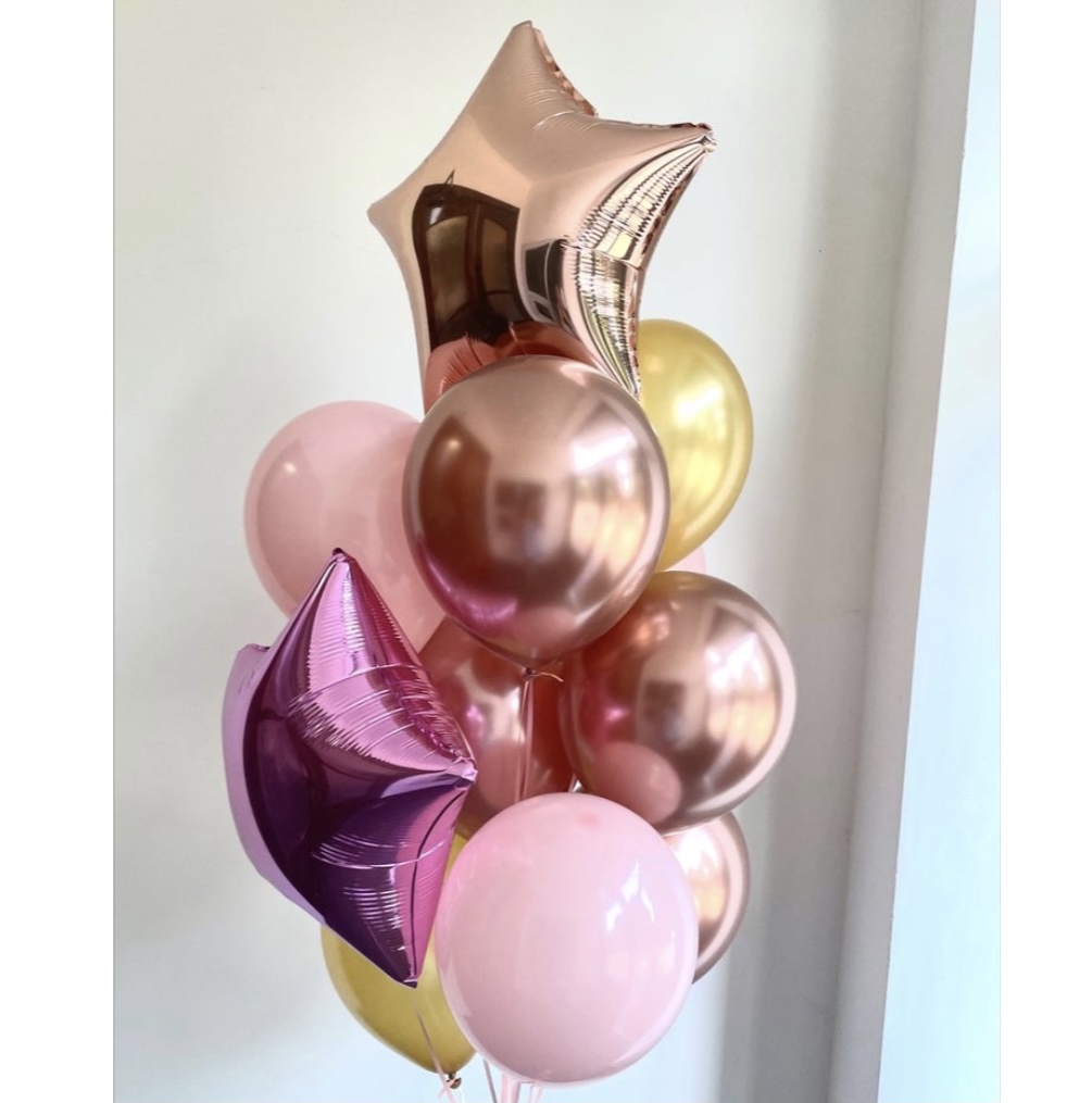 Фонтан из 11 воздушных шаров с гелим . Собран каскадом на грузик.