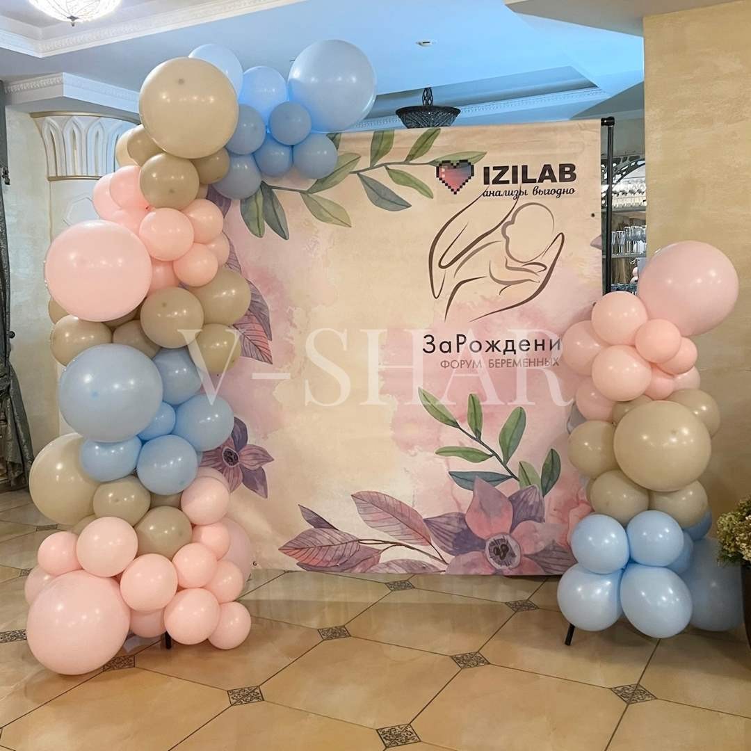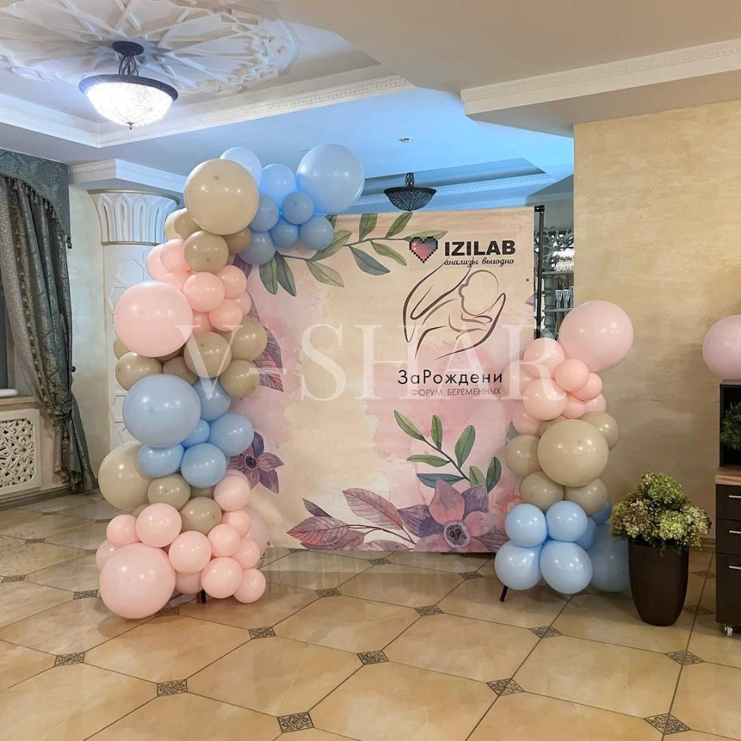 Фотозона на каркасе с декором из воздушных шаров в технике «Органик декор».