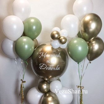 - 14 латексных шаров 30-35 см (6 белый пастель, 4 эвкалипт, 4 хром золото)