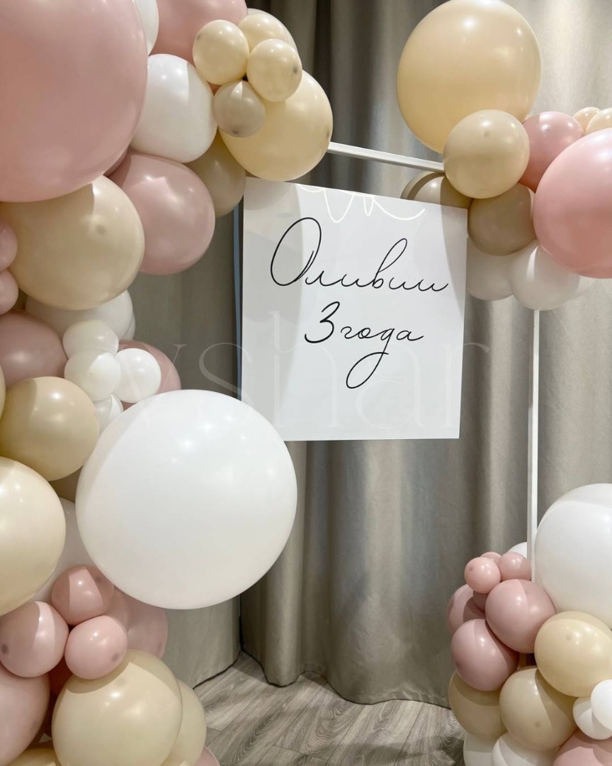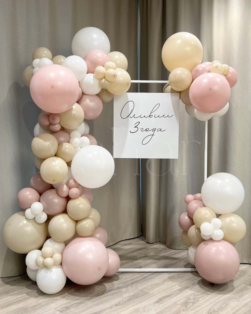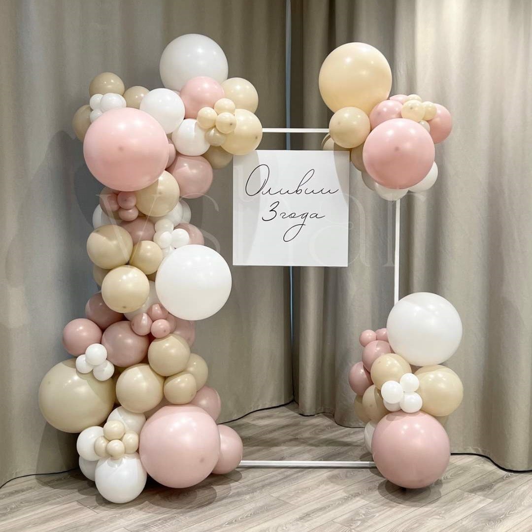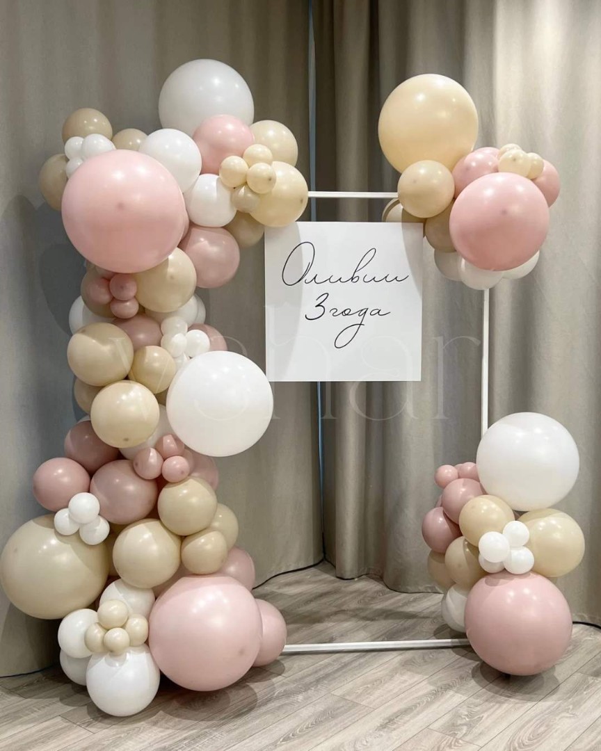 - разнокалиберная гирлянда из латексных шаров 5,12,18" (пыльная роза, белый песок, белый)