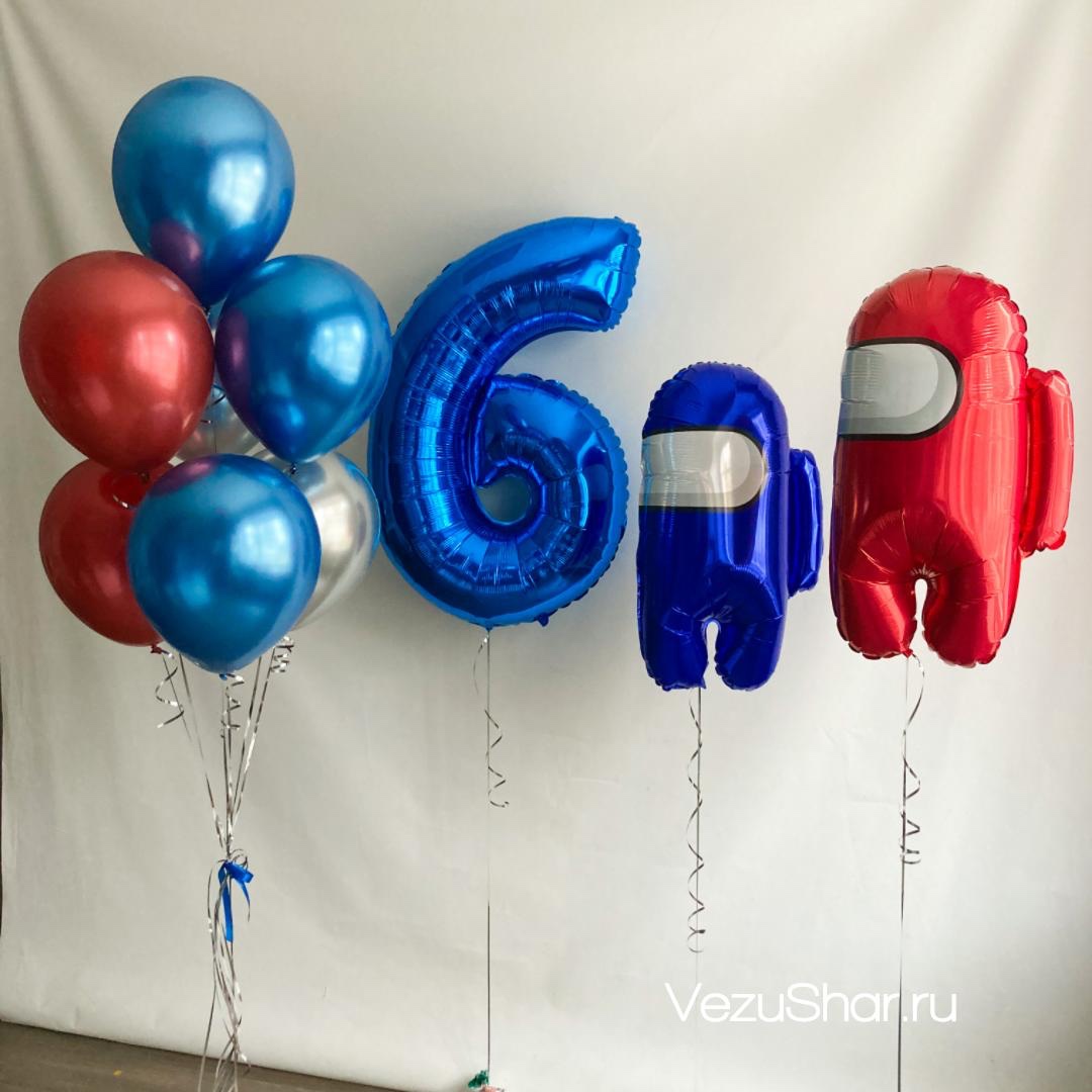 7 латексных шаров (2 красный хром, 2 серебряный хром, 3 синий хром)