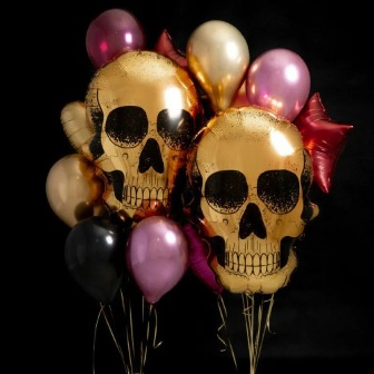 1 фонтан: фигура череп, сердце фольгированное золото сатин, звезда фольгированная бордовая, 2 хром джемар, 2 розовый хром, 2 черный пастель, 2 бордовый металл, грузик