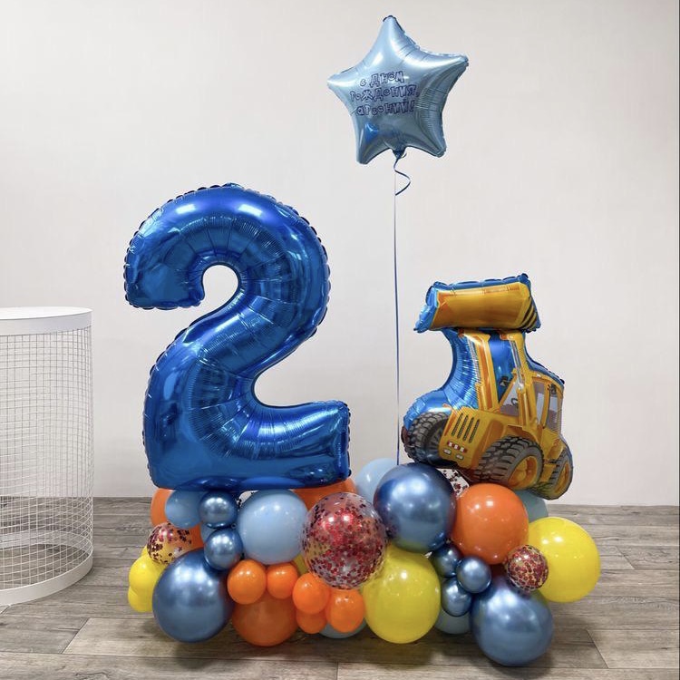 Композиция из шаров с фольгированной цифрой и фигурой.