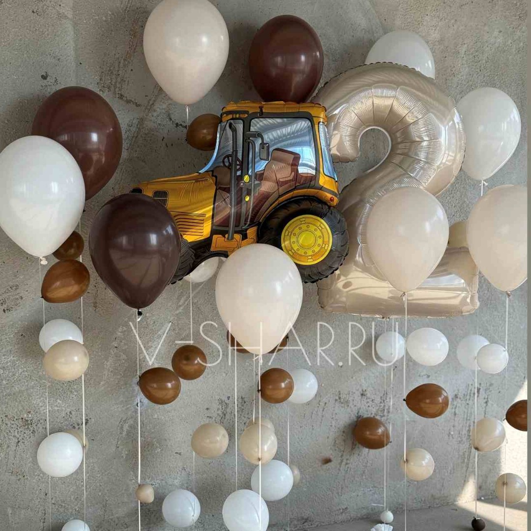 - 10 латексных шаров 30-35 см с гирляндой (3 шоколад, 4 белый песок, 3 белый)
