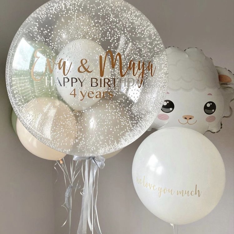 - Латексный шар 65-70 см с белыми шариками пенопласт и надписью ( до 6 слов) на грузике