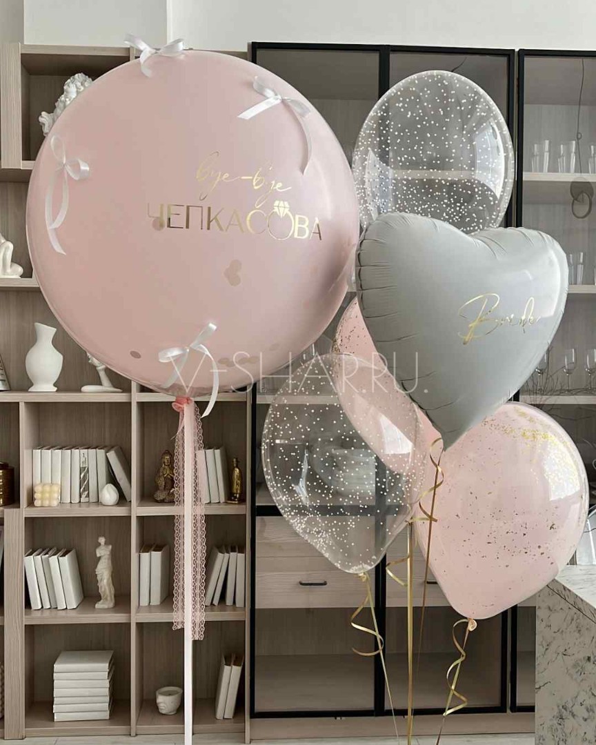 - 4 латексных шара 30-35 см (2 с белым пенопластом, 2 двойных розовый макарун в кристалле с конфетти золото)
