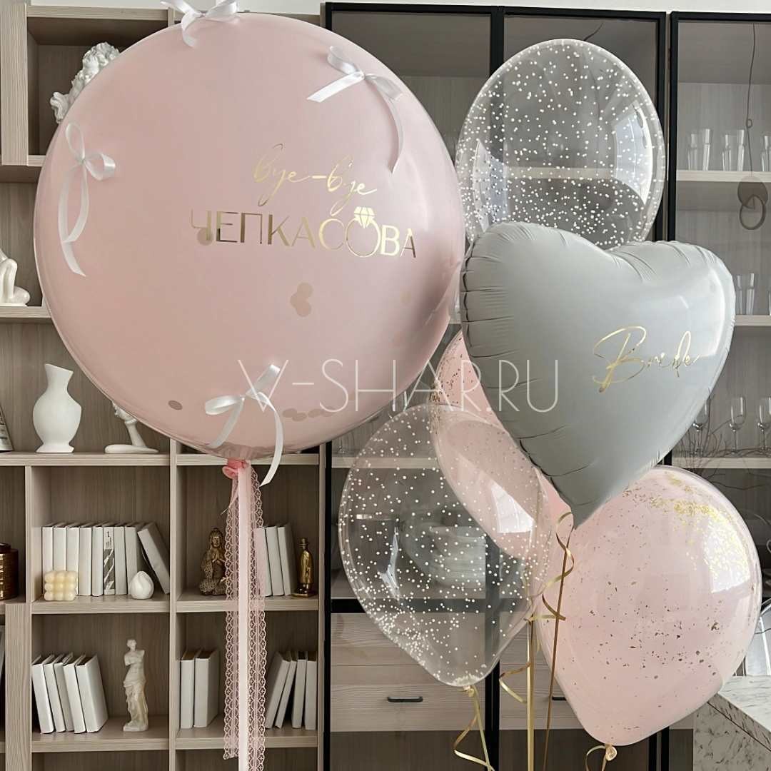 - шар "Фамилия" латексный розовый макарун 24"/60 см Sempertex с декором бантики и индивидуальной надписью