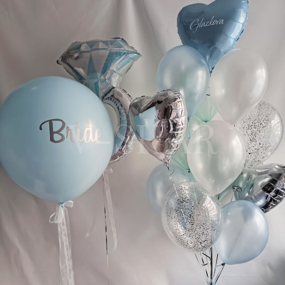 - 10 латексных шаров 30-35 см ( 2 с серебряным конфетти, 3 металлик голубой, 3 металлик лайт грин, 2 металлик белый жемчуг);