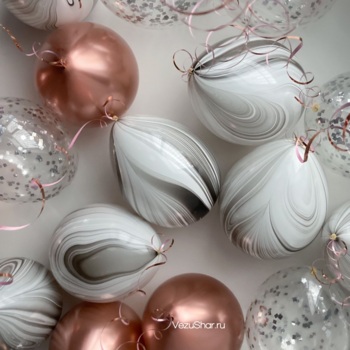 Восхитительный сет из 15 латексных шаров с гелием на металлизированной ленте. Каждый шар в этой композиции стильный и уникальный. Эффектно украсит любой праздник и подарит незабываемые эмоции.