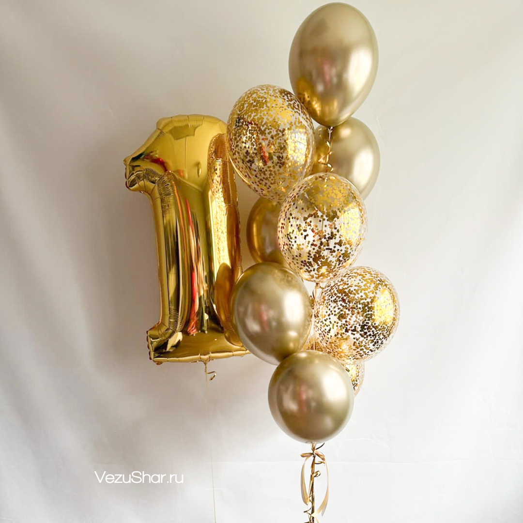 - 9 латексных шаров 30-35 см ( 5 хром золото glossy gol, 4 с конфетти кубик золото)