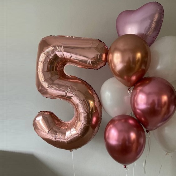 - Цифра фольгированная розовое золото 102см на выбор;