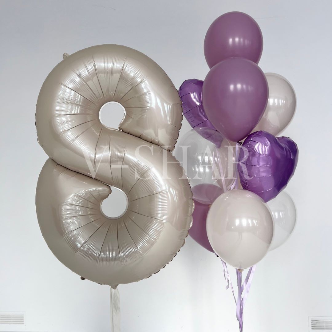 - 8 латексных шаров 30-35 см (3 ретро лаванда S, 2 кристалл, 3 дабл кристалл внутри крем S)
