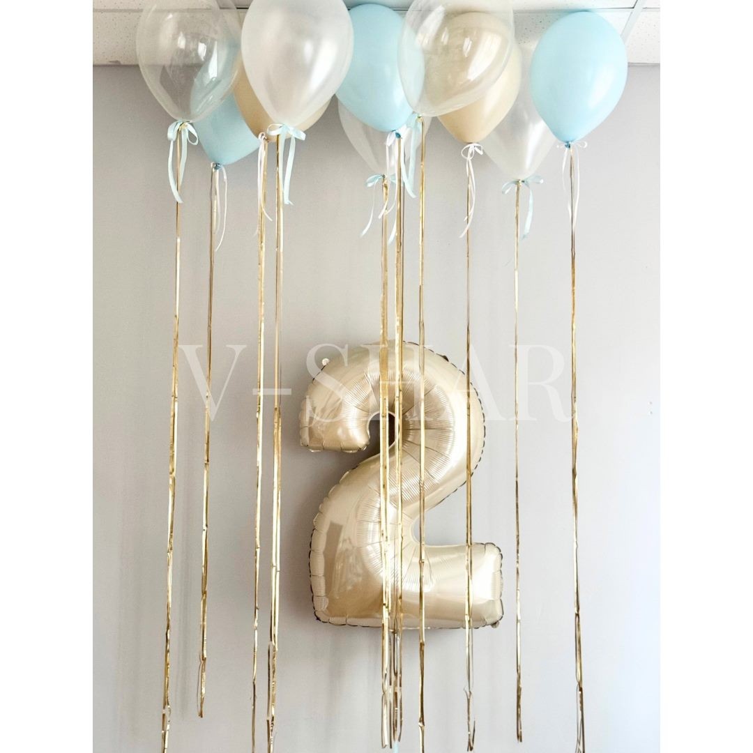 - 10 латексных шаров 30-35 см (3 голубой макарунс, 3 белый металл, 2 кристалл, 2 белый песок S)