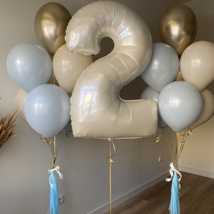 - 14 латексных шаров 30-35 см (6 серых пастель (арт.112081-50), 6 белый песок (арт.112071-50),2 золото хром (арт.1102-2301))