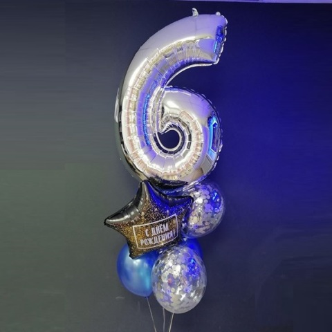 - 5 латексных шаров (2 с конфетти, 3 металл синий)