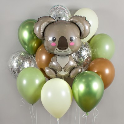 фигура коалы и 11 воздушных шаров с гелием под потолок (без грузика)