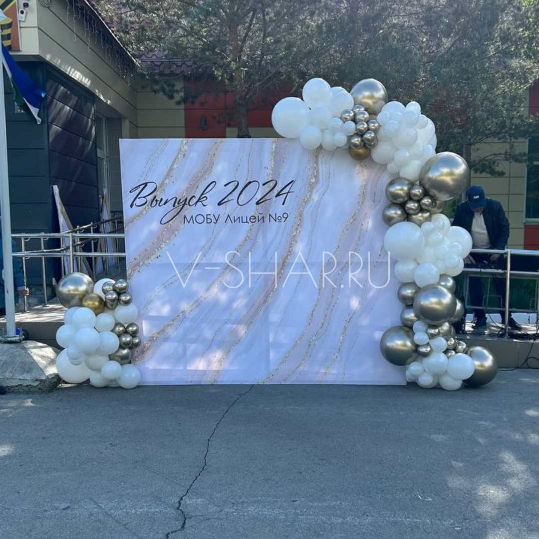 Фотозона на каркасе с декором из воздушных шаров в технике «Органик декор».