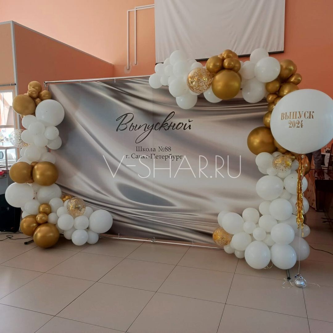 Фотозона на каркасе с декором из воздушных шаров в технике «Органик декор».