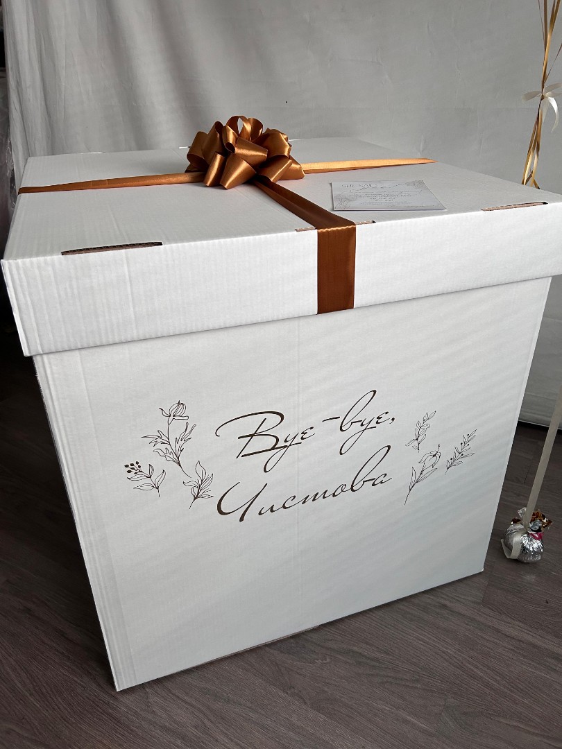 - коробка белая 70*70*70 см с индивидуальной надписью до 5 слов