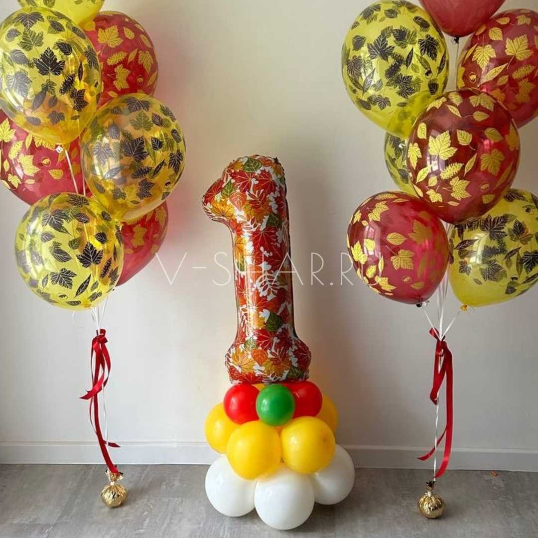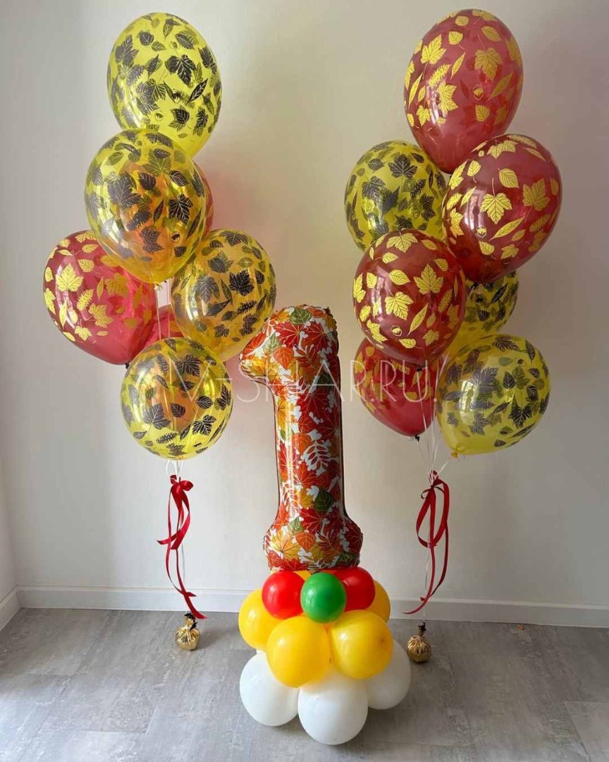Композиция пойнт с цифрой и 14 шаров с гелием.