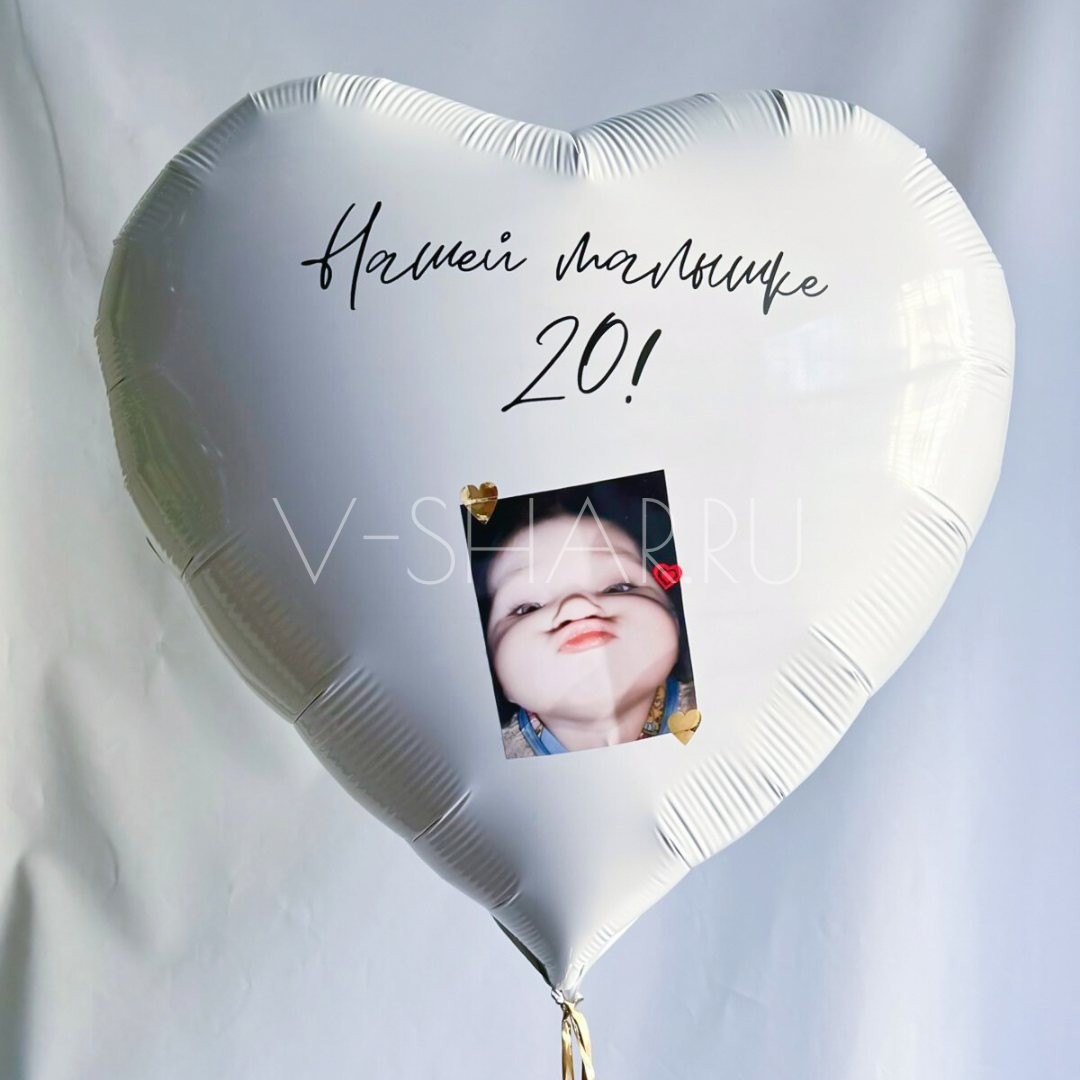 - фольгированный шар сердце белое 30"/76 см с индивидуальной надписью и фото