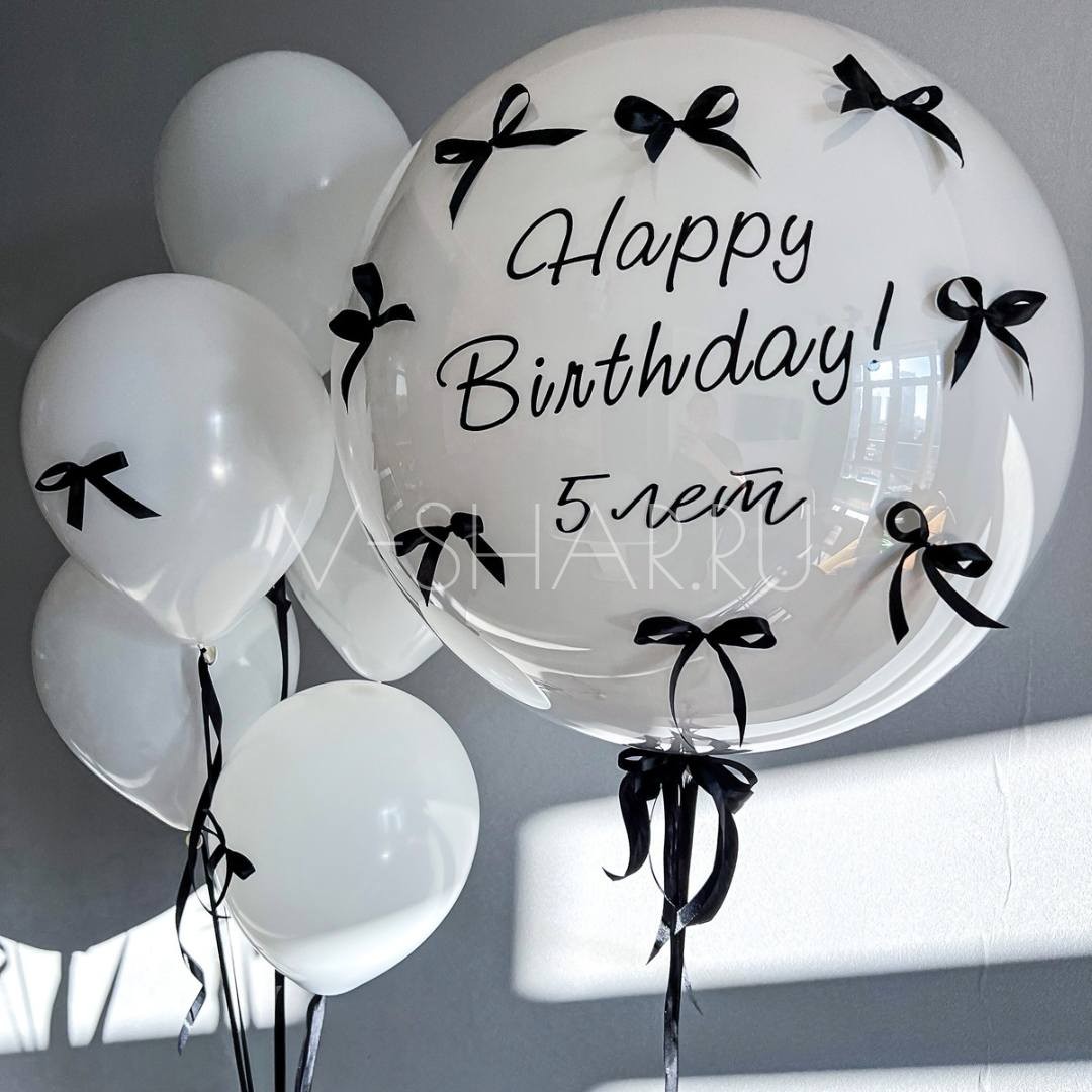 - "стеклянный" шар 60-65 см (прозрачный баблс An, внутри латексный шар белый S 24"/60 см) с декором бантики