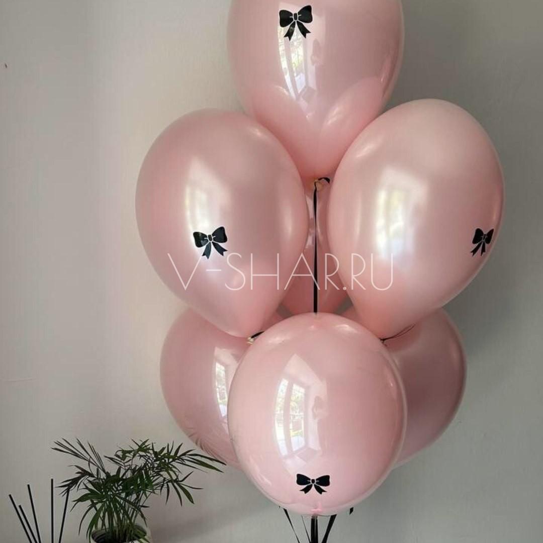 - 7 латексных шаров 35 см (кристалл, внутри розовый пастель) с декором и лентой