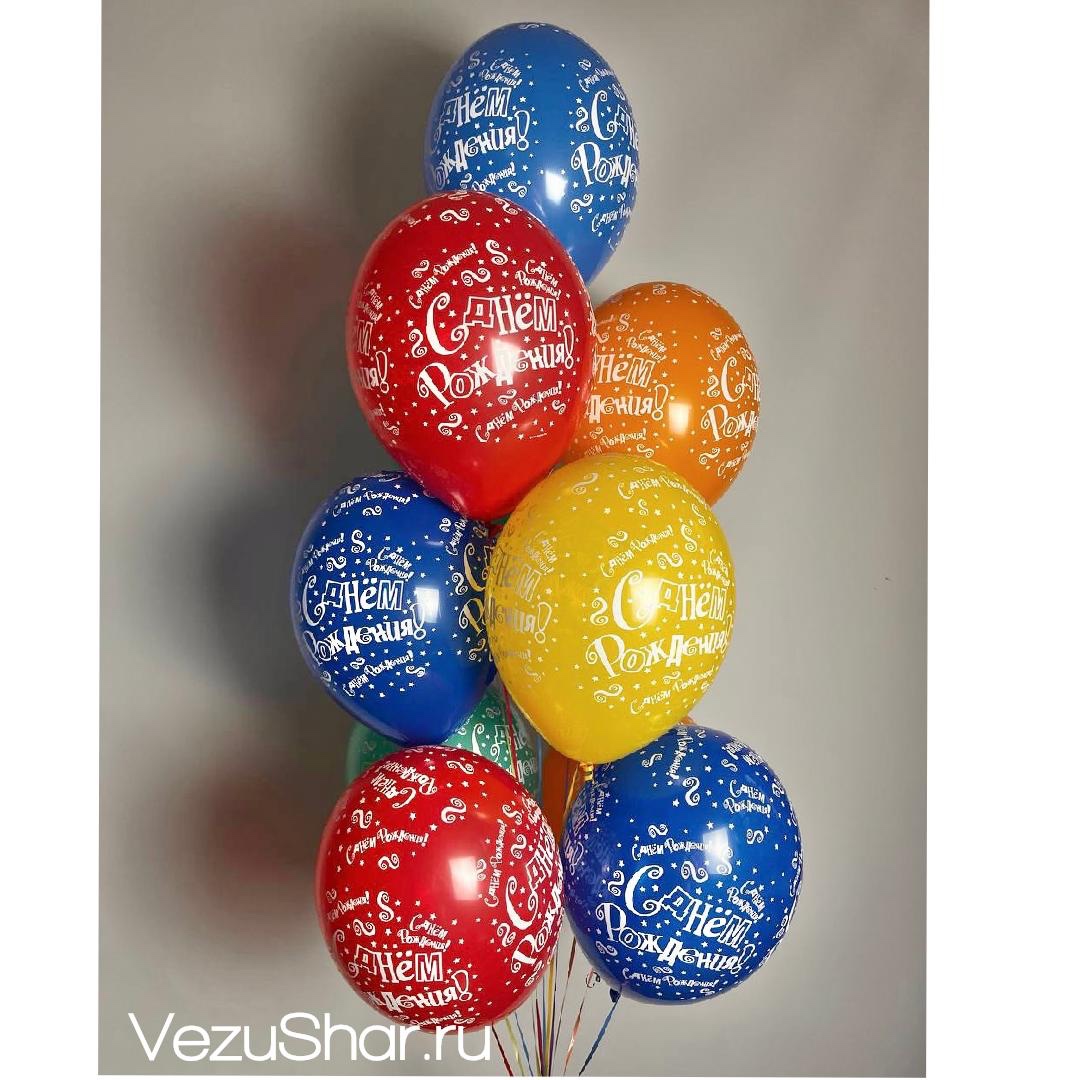 - 10 латексных шаров 30-35 см с рисунком ассорти с ДР
