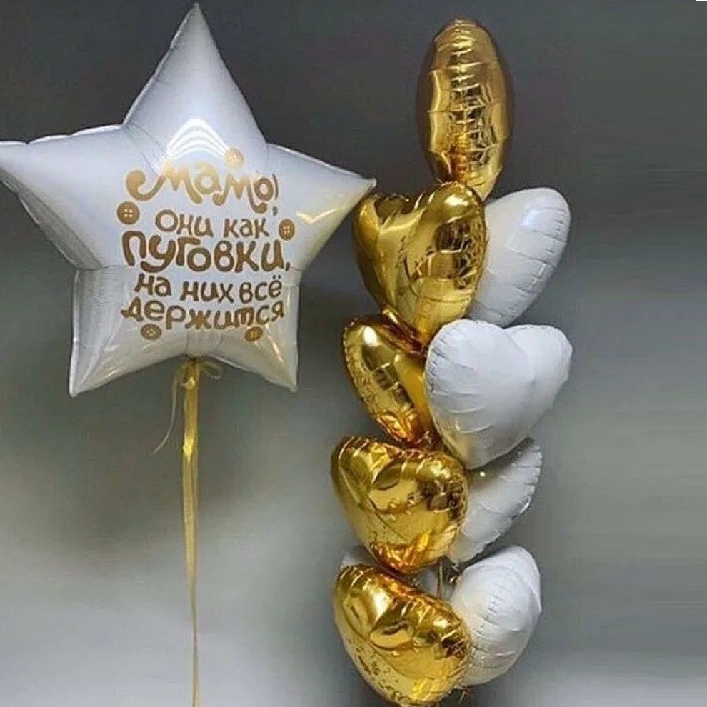 - 10 фольгированных шаров 45 см (5 сердец золото, 5 белых сердец)
