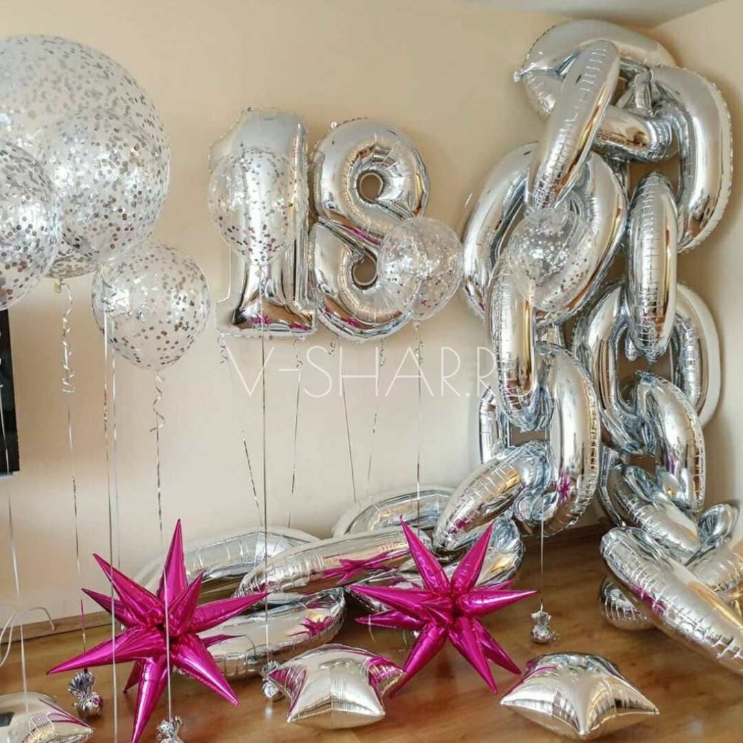 - 5 фольгированные фигуры с воздухом (3 звезды, 2 шипа)