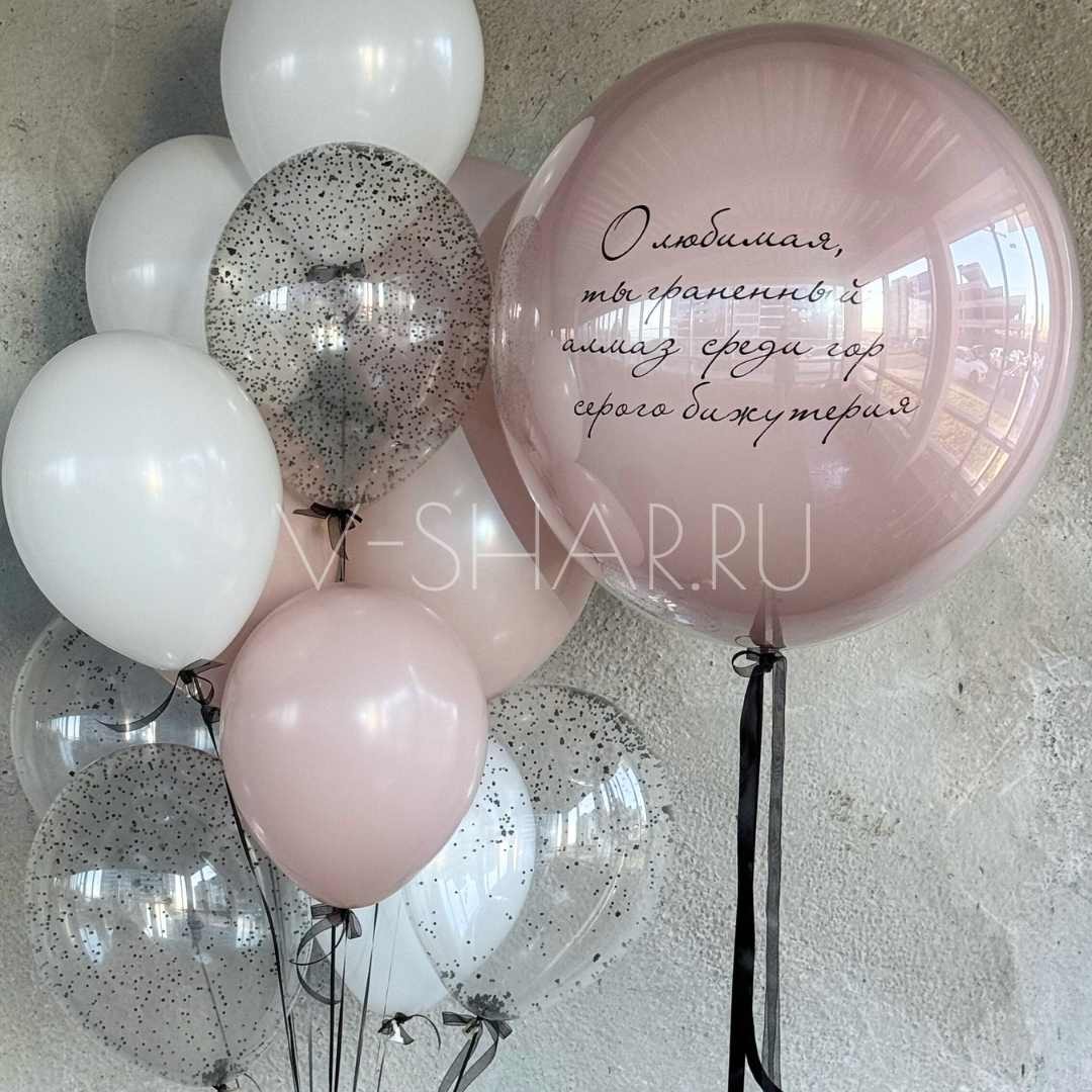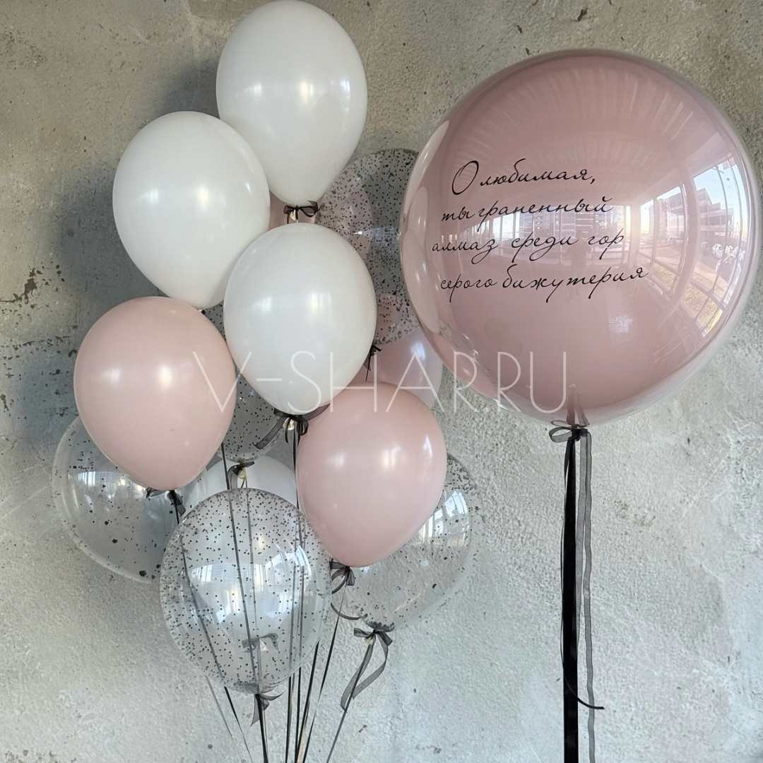 - 13 латексных шаров 30-35 см (4 белый ,4 пыльная роза, 5 c конфетти)