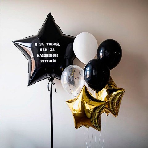 - 5 латексных шаров (1 с конфетти, 2 белый пастель, 2 черный пастель)