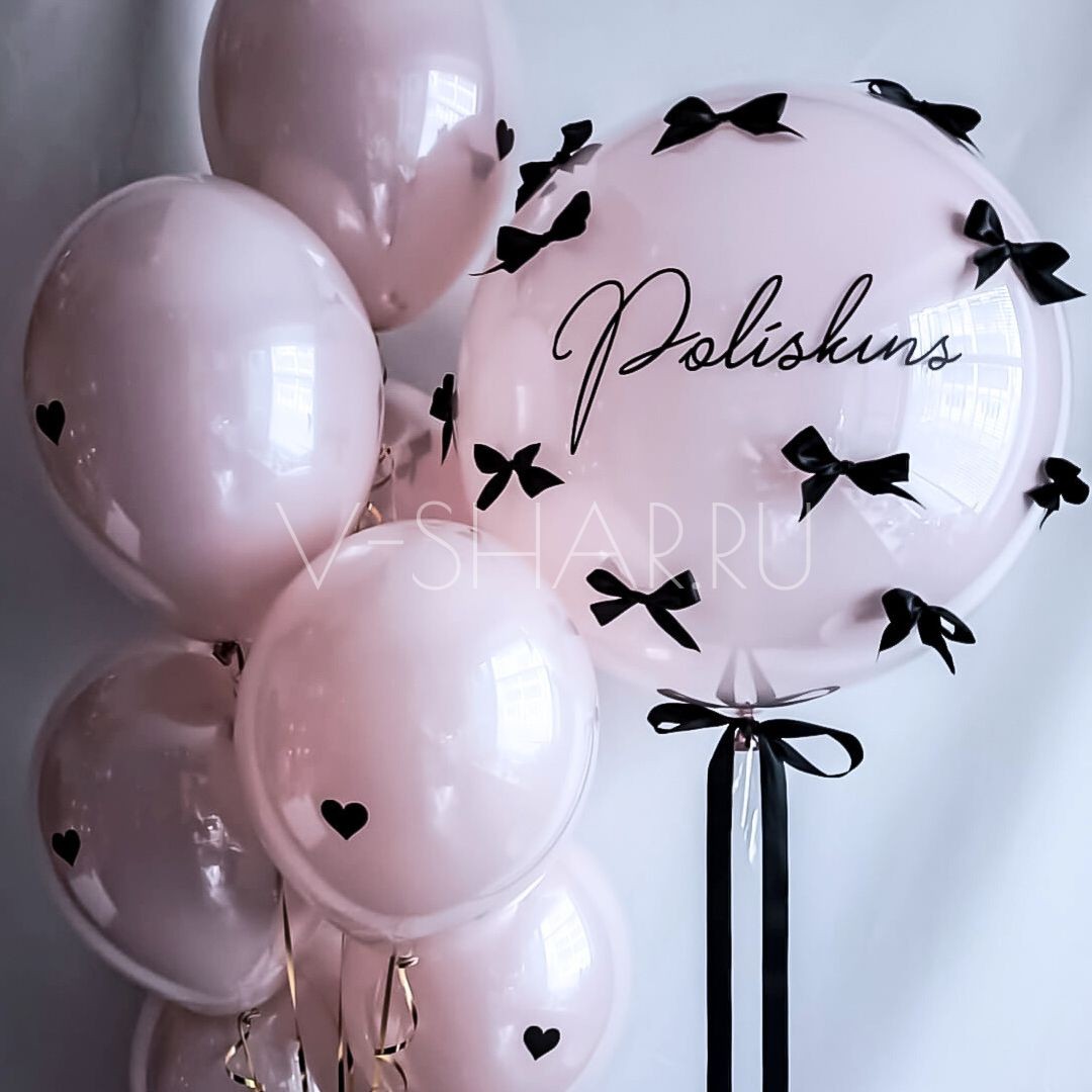 - "стеклянный" шар 60-65 см (прозрачный баблс An, внутри латексный шар макарунс розовый S 24"/60 см) с декором бантики