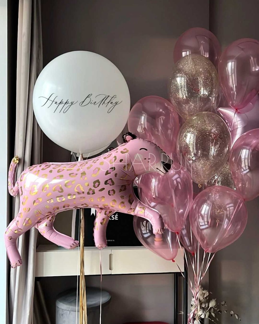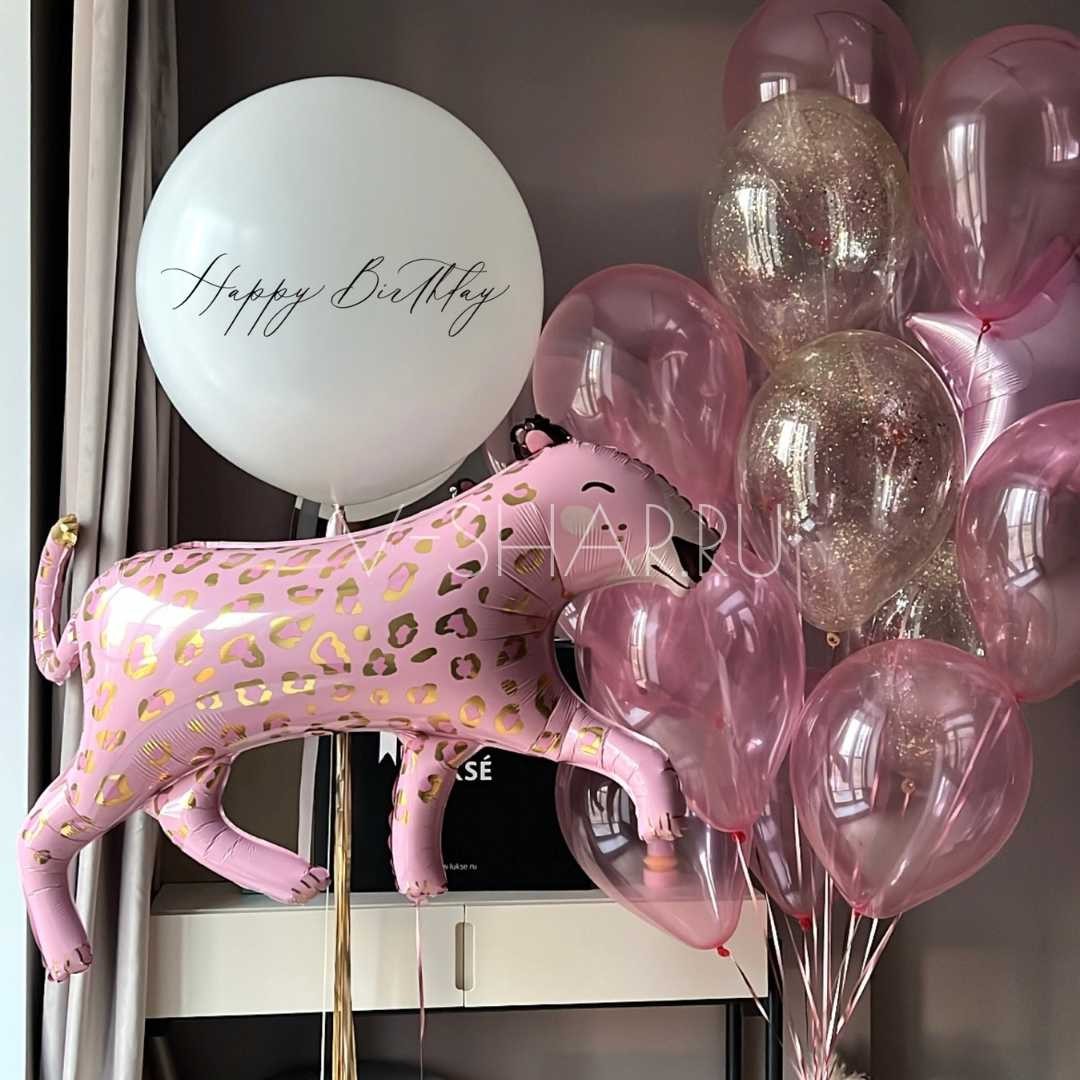 - большой белый шар 24"/60 см с гирляндой в пол и индивидуальной надписью