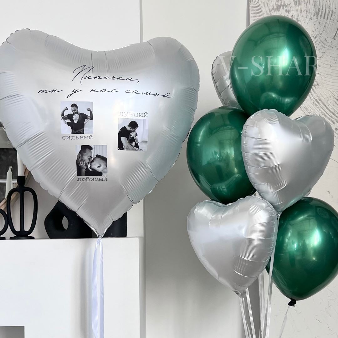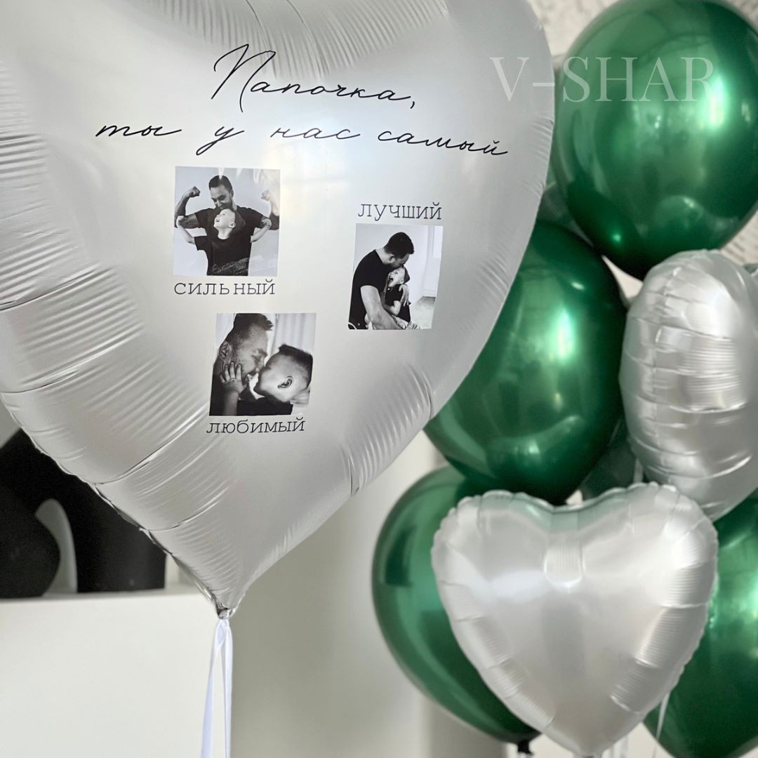 - фольгированный шар сердце белый Grabo 36"/90 см с надписью и фото