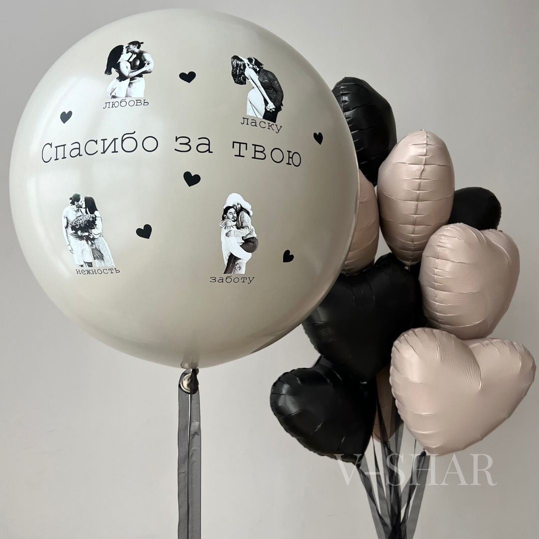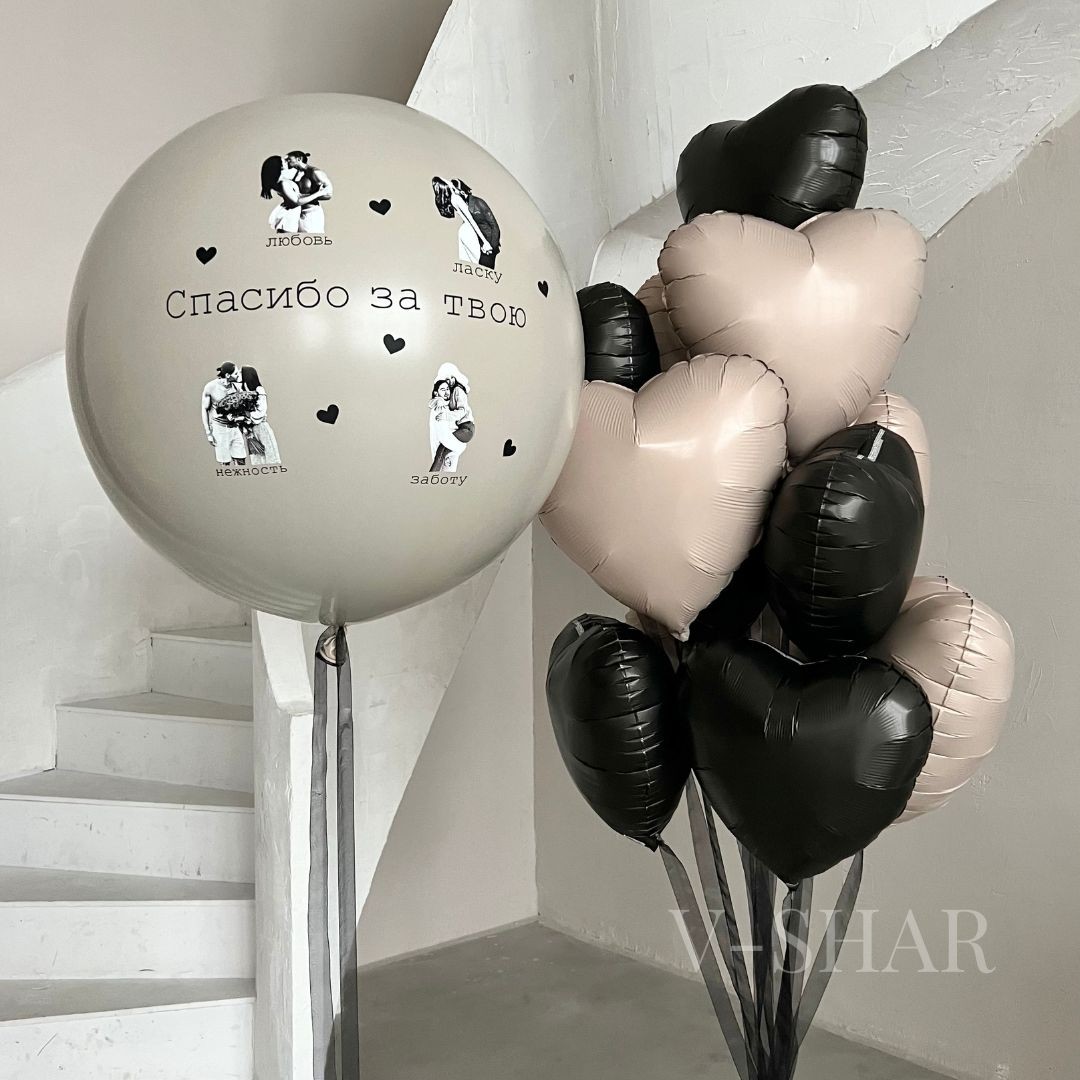 - 12 фольгированных шаров 45 см ( 6 кремовый сатин Ag, 6 черный сатин An)