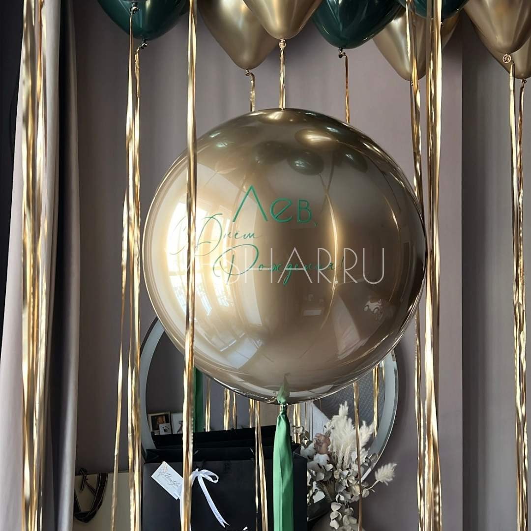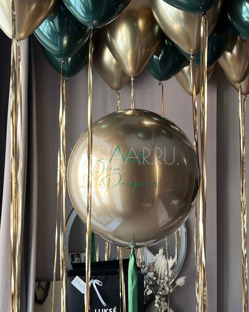 - 15 латексных шаров 30-35 см (8 хром золото, 7 дабл черный пастель в зеленом кристалле B)