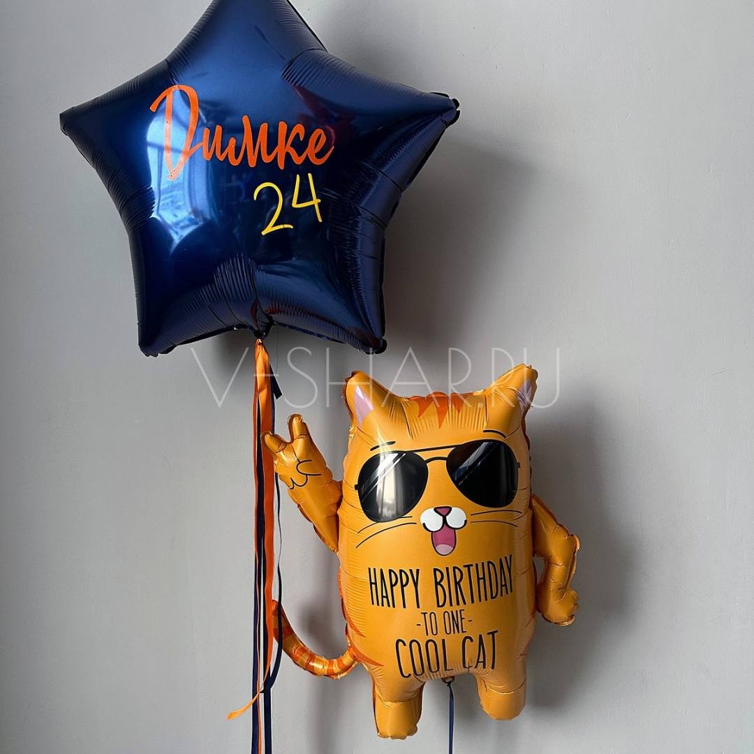 - фольгированная темно-синяя звезда 32"/78 см с индивидуальной надписью