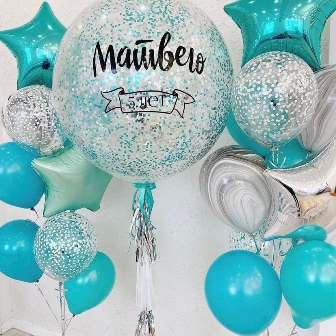 - большой латексный шар 65-70 см с конфетти и индивидуальной надписью и гирляндой в пол