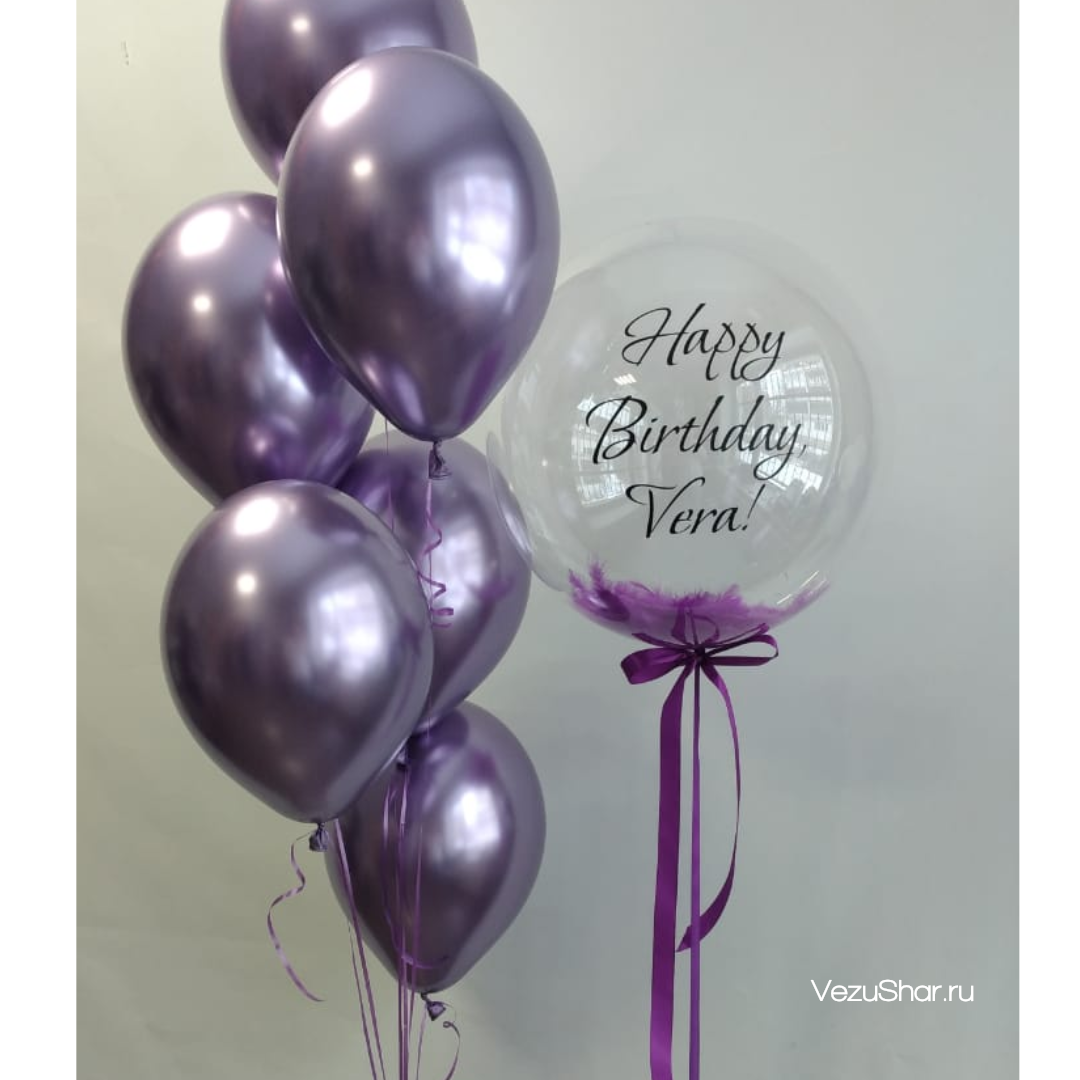 - баблс 45 см с фиолетовыми перьями и индивидуальной надписью до 5 слов;