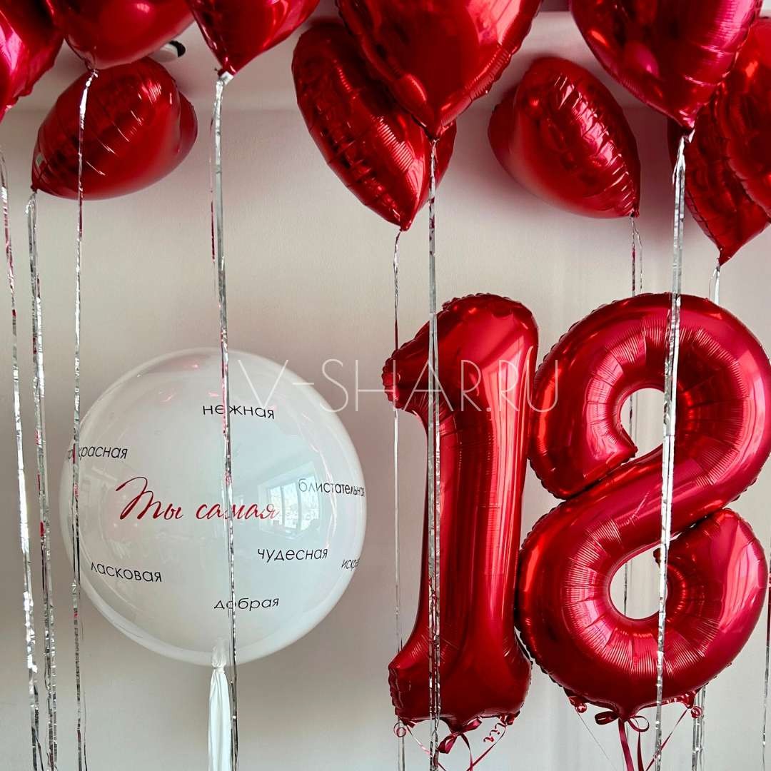 - 10 фольгированых сердец 45 см красных с серебряным дождем