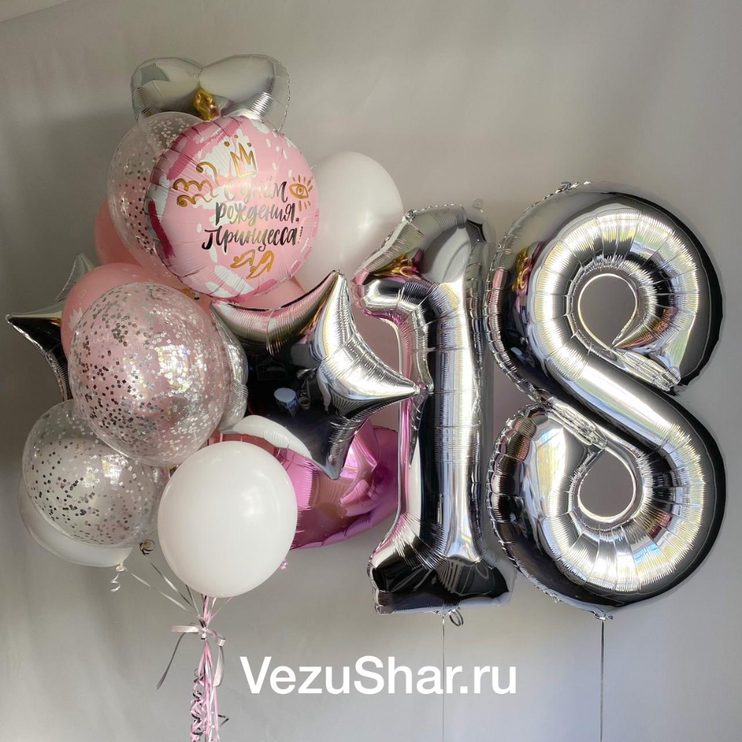 Композиция из 18 шаров с гелием.