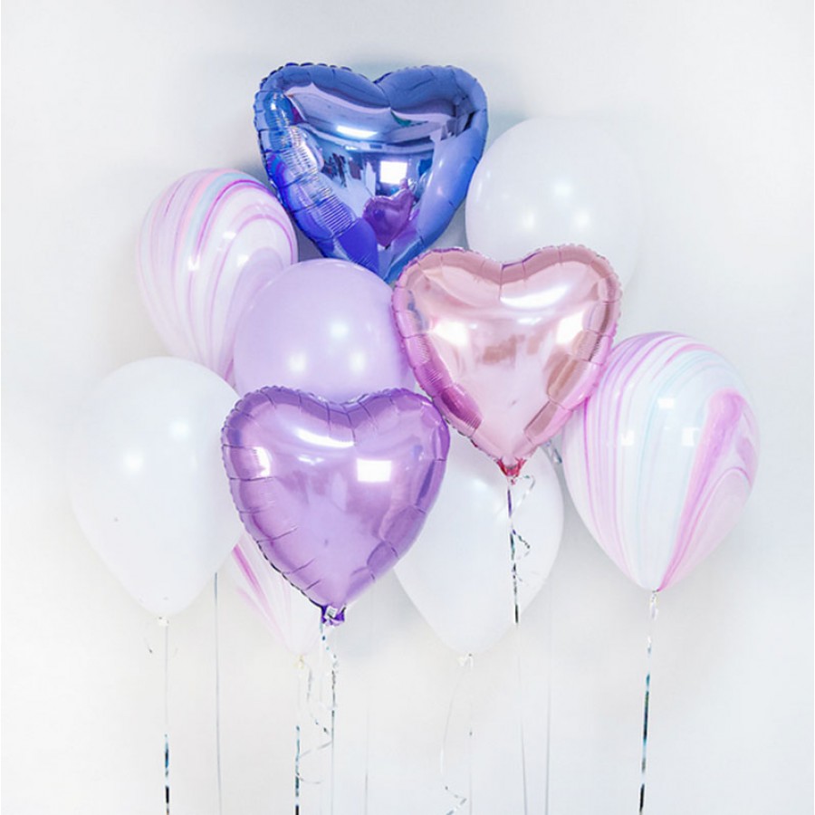 - 7 латексных шаров (3 агат fashion; 3 белый пастель; 1 лаванда макарун)