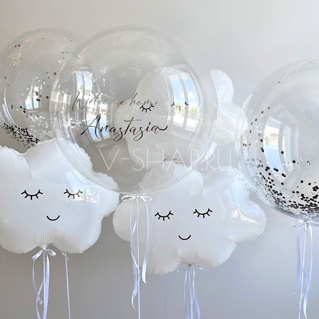 - 2 баблс 45-50 см с наполнением серебряным конфетти