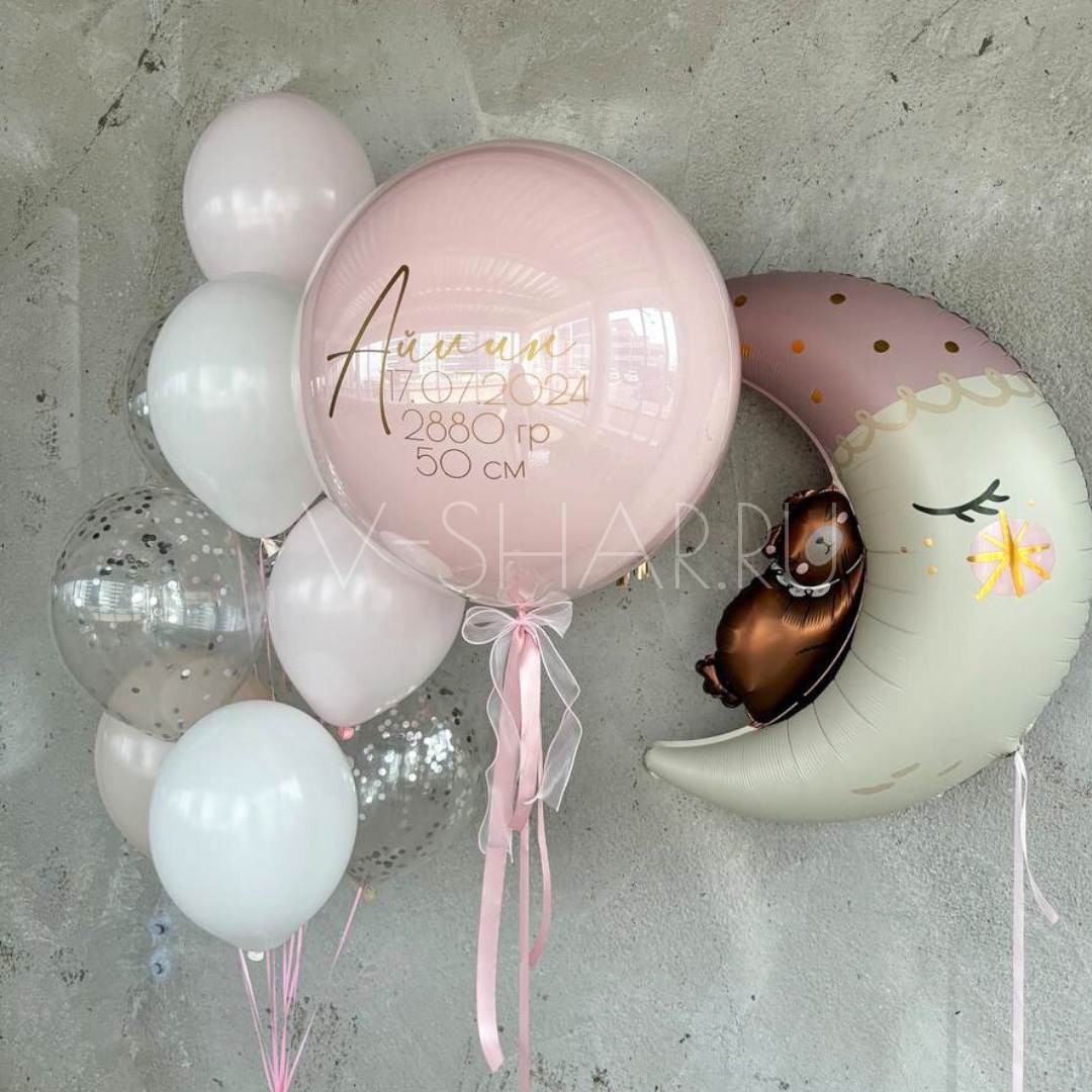 - "стеклянный" шар (прозрачный баблс An, внутри латексный шар розовый макарунс S 24"/60 см)