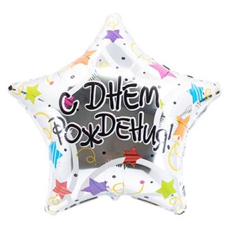 Шар с гедием в форме звезды с рисунком и надписью " С Днем Рождения!"
