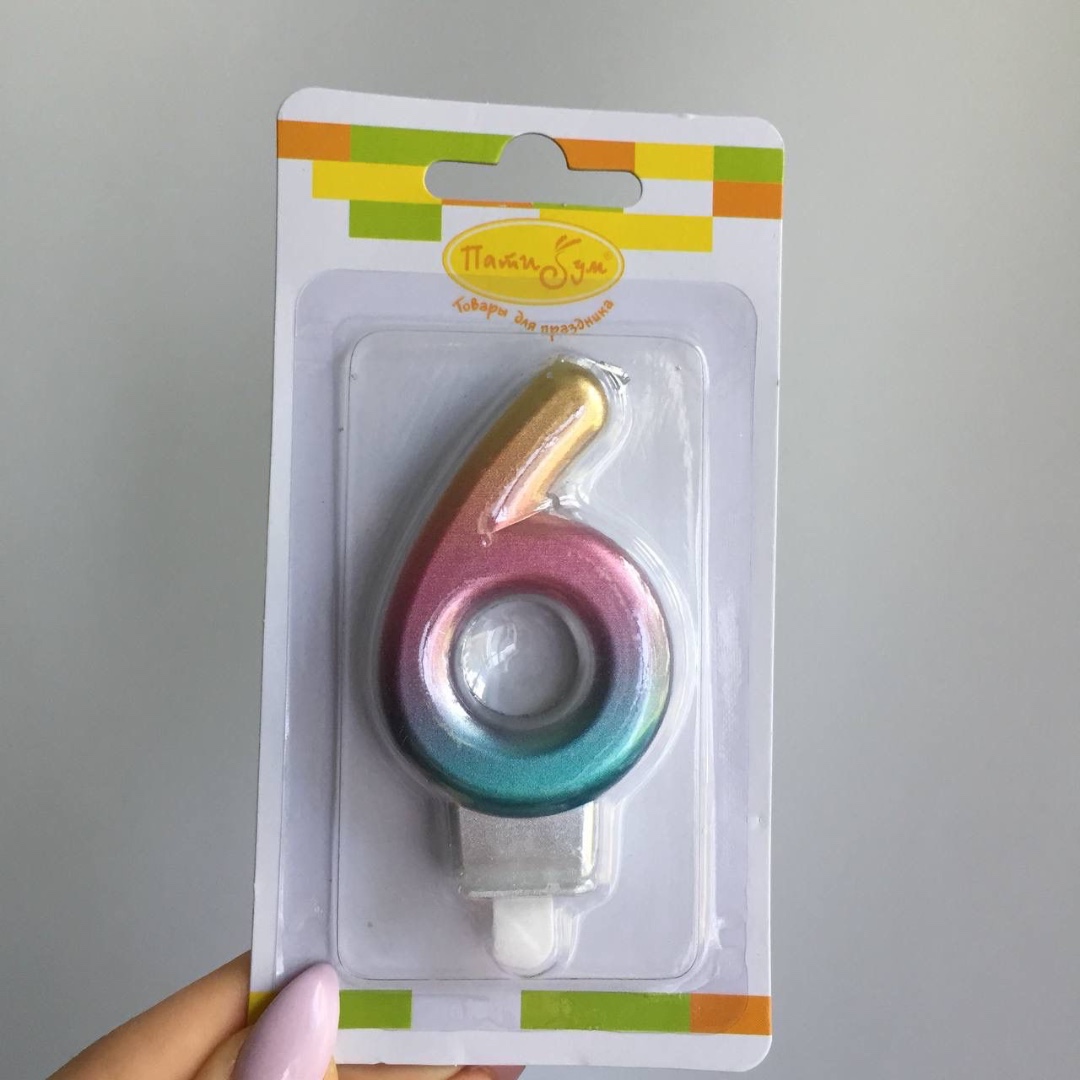 - Свеча "6" радуга градиент